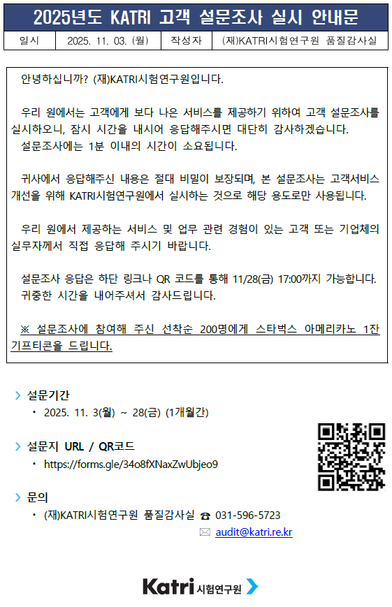 2025년도 KATRI 고객 설문조사 실시 안내 2025-11-03 |