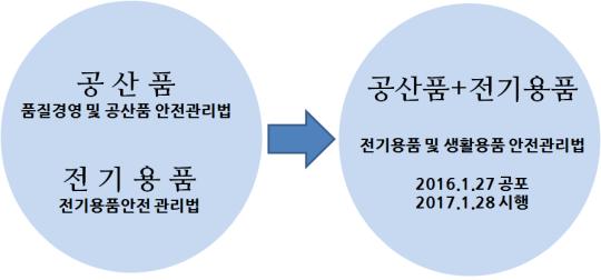「전기용품 및 생활용품 안전관리법」 개정 안내 [2017.1.28 시행] 전기용품 및 공산품 안전관리제도의 효율적 운영을 위해 두 법령을 통합하여 「전기용품 및 생활용품 안전관리법」으로 개정되었음을 알려드립니다. |