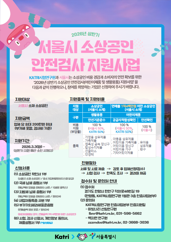 2026년 서울시 소상공인 안전검사 지원 사업 안내(상반기)
